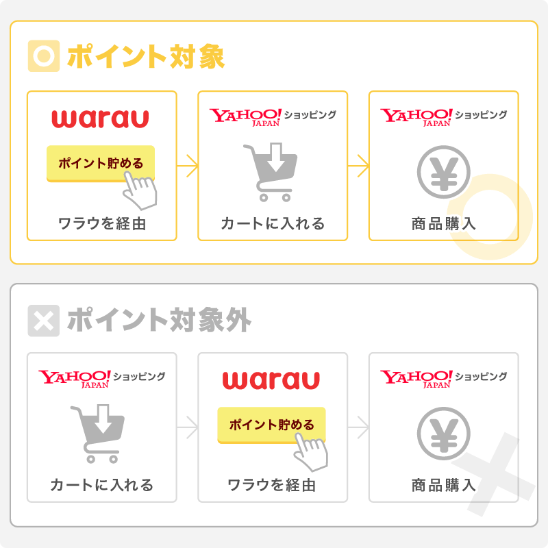 ※購入完了前に別のサイトに移動した場合、ワラウポイント対象外となります。