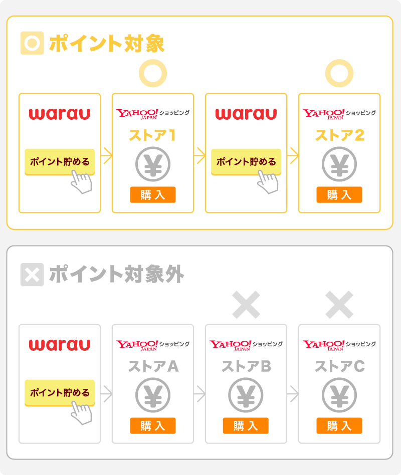 ※複数ストアでの商品購入を対象とするためには、1ストアずつワラウを経由し、決済を行ってください。
