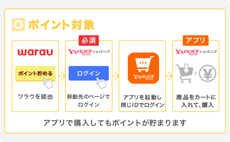 ※「Yahoo!ショッピング アプリ」で購入する場合は、遷移先ページのログインIDとアプリのログインIDを一致させご利用ください。